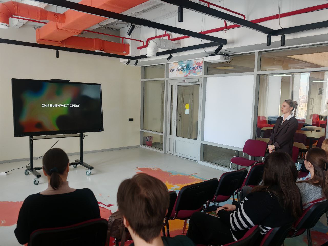 На мероприятии также присутствовала представитель от Минобрнауки России, советник отдела популяризации науки и технологий Департамента государственной политики в сфере научно- технологического развития, а также выпускница РАНХиГС 2023 года - Миронова Юлия Павловна. Она выступила со вступительным словом перед показом фильма.